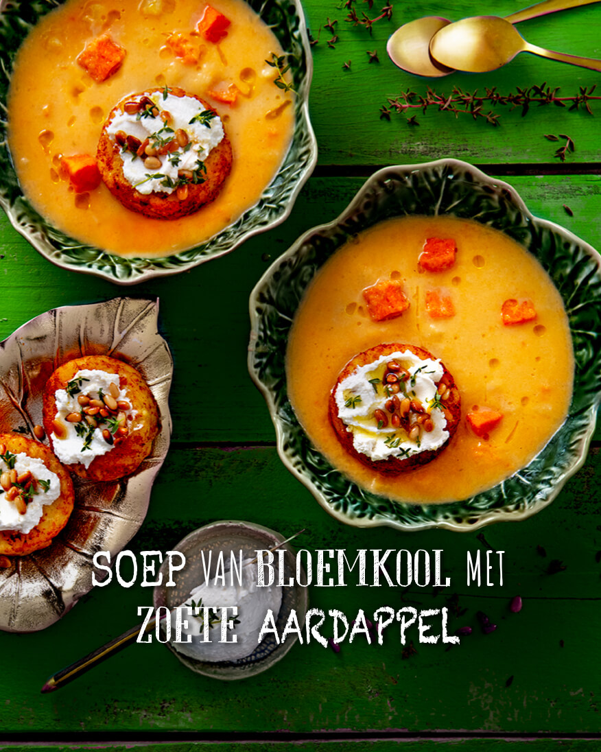 Soep van bloemkool met zoete aardappel