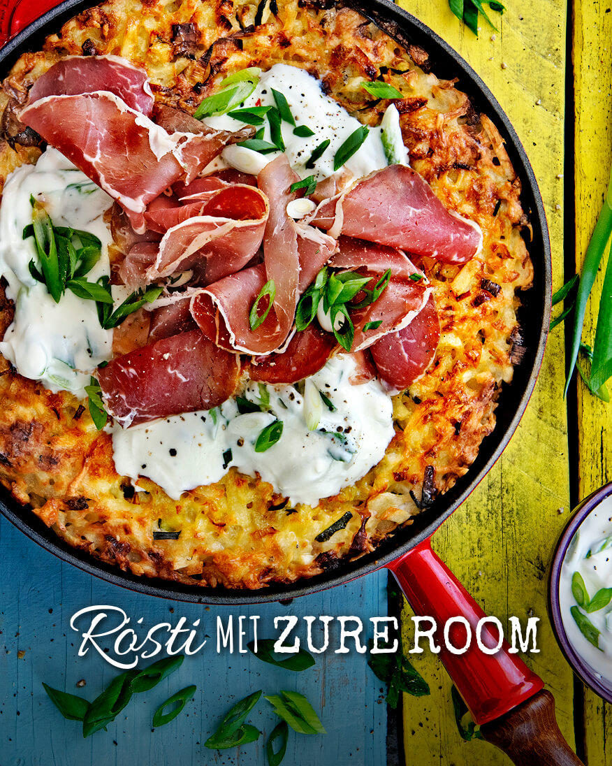 Rösti met zure room & Viande de Grison