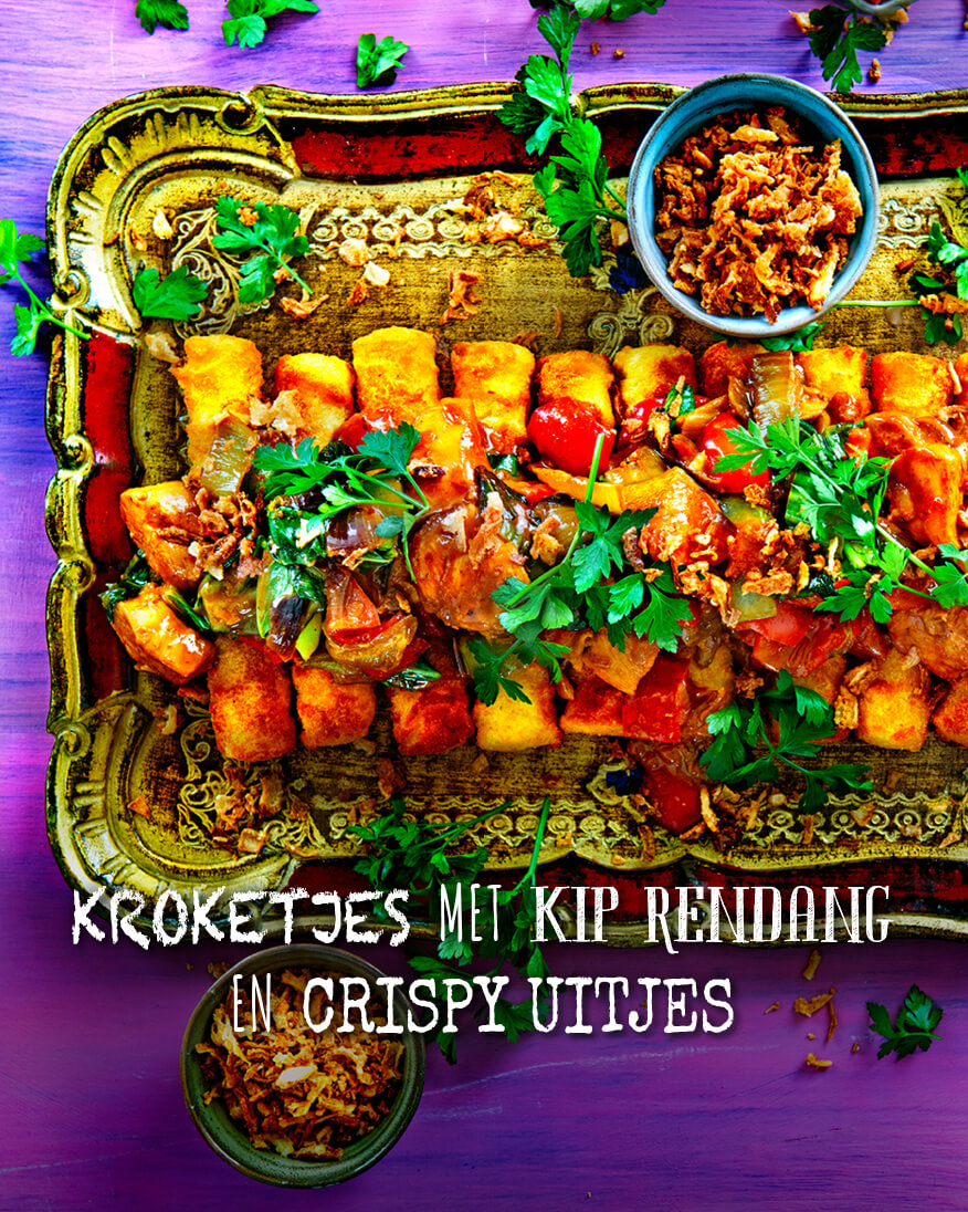 Kroketjes met kip rendang en crispy uitjes